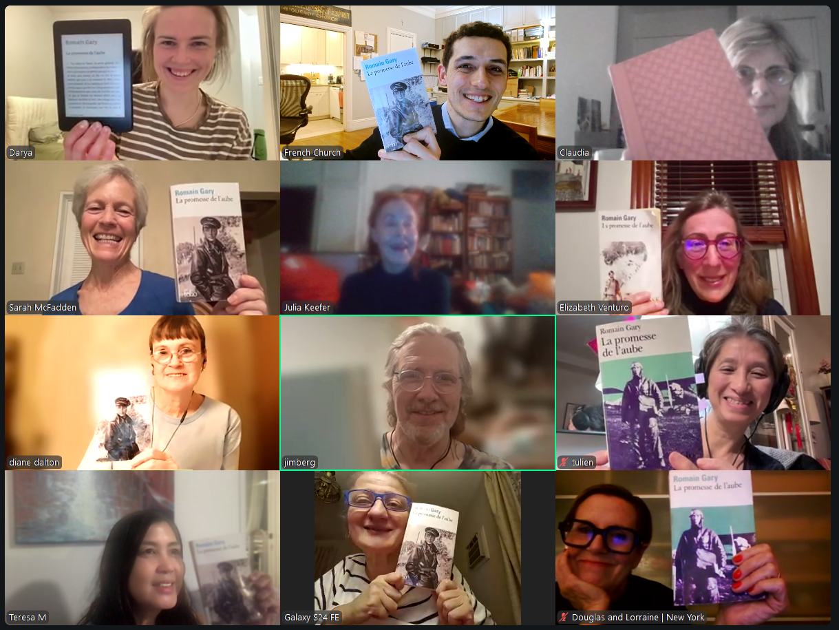 Everyone is welcome in the book club! You can sign up for our mailing list and attend meetings whenever you’d like. Signing up doesn’t mean you have to come every month. All levels of French are welcome: you’re not required to speak — you’re also welcome to just listen. Most participants have a conversational level of French, but intermediate learners can also benefit greatly from the readings and discussions.